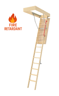 The LFT Fire-Retardant Insulated Attic Ladder is a 3-section folding wooden ladder designed to provide enhanced fire resistance and excellent thermal insulation. With an R-value of 10, it is well-suited for residential applications where improved energy efficiency and fire-retardant access to the attic is needed.